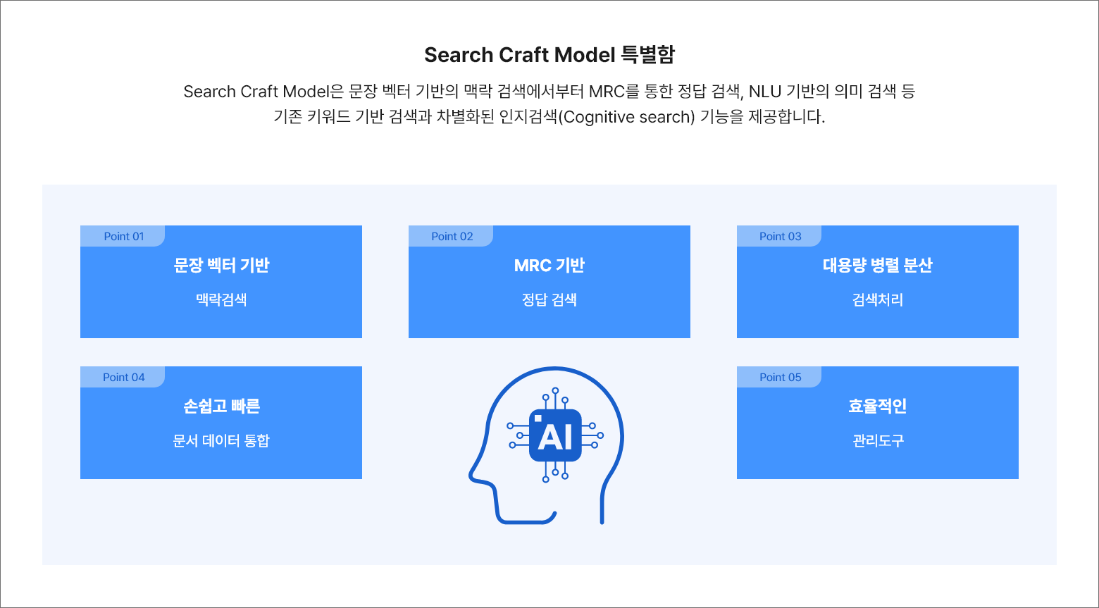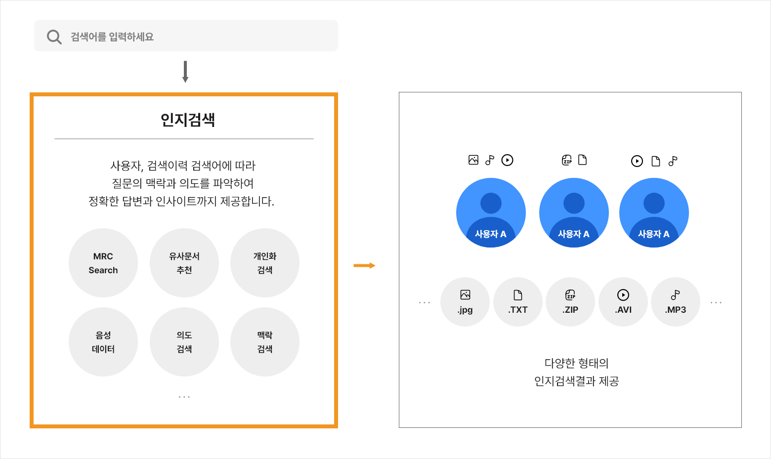 단순 키워드 검색을 넘어, 의미와 문맥을 이해하는 스스로 학습하는 지능형 인지검색 솔루션.