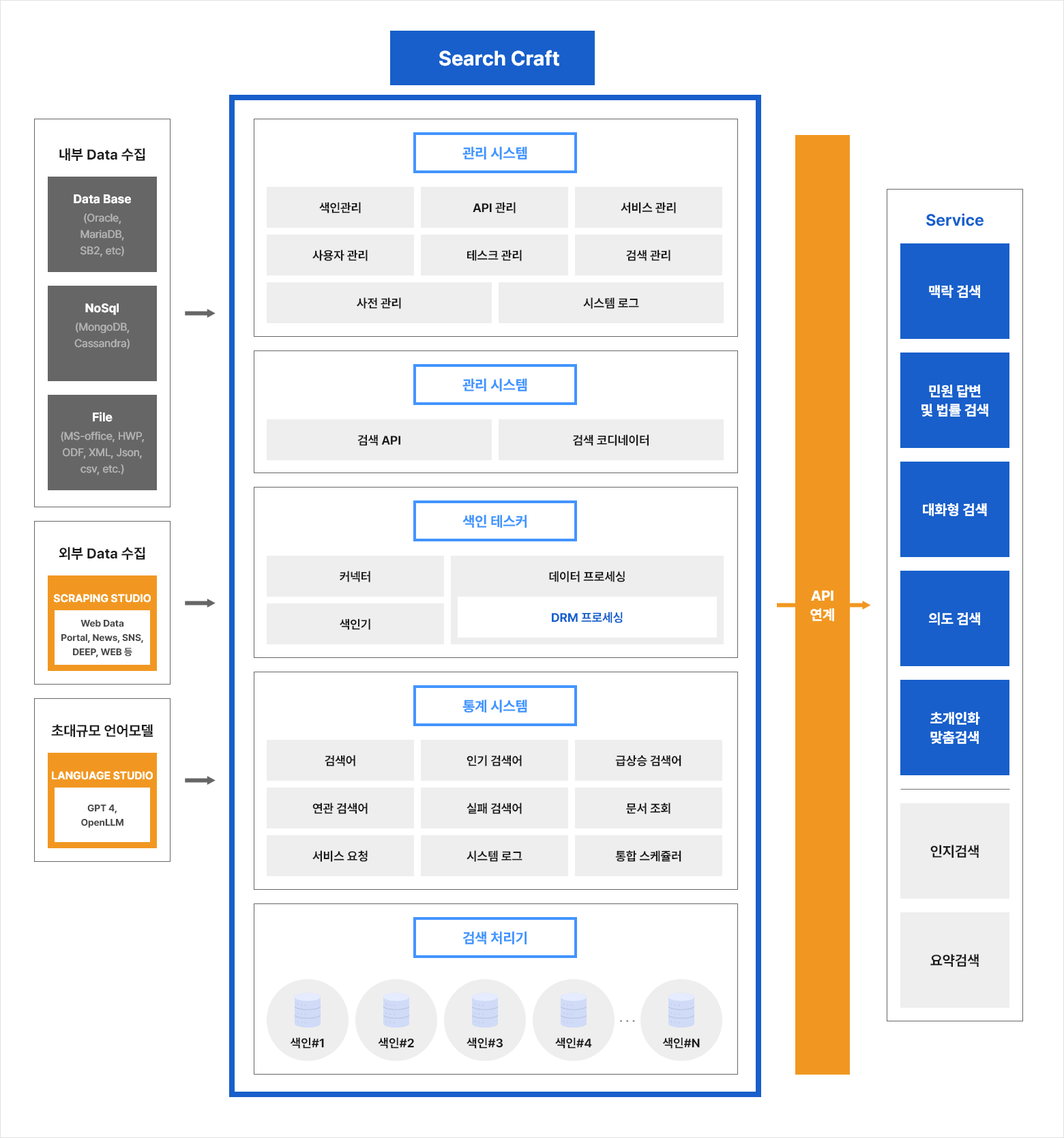 Search Studio를 통해 고객이 보유한 비정형 데이터의 실시간 검색으로 정확하고 신뢰성 있는 내용 탐색합니다.