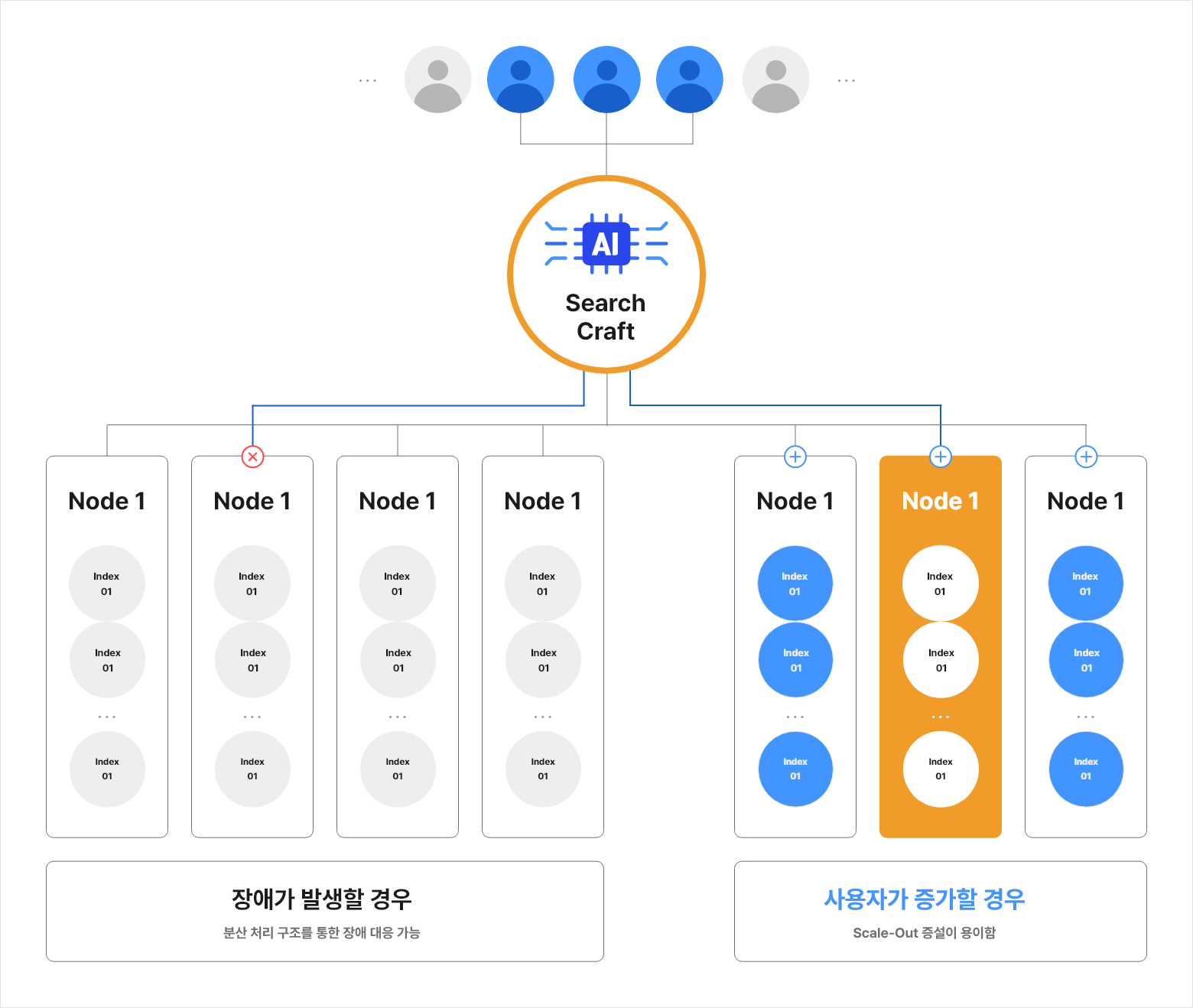 방대한 데이터를 빠르게 정리하고, 여러 서버가 함께 처리해 언제나 빠르고 안정적인 검색을 제공합니다.