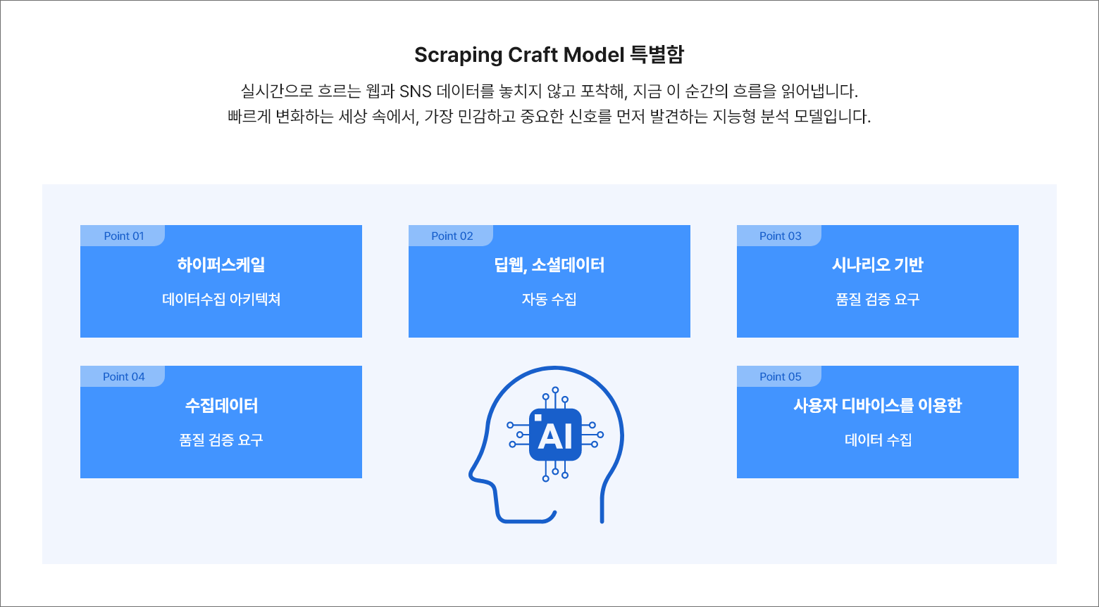데이터가 많아질수록 더 똑똑해지는, 확장형 인공지능 데이터 수집 엔진입니다.